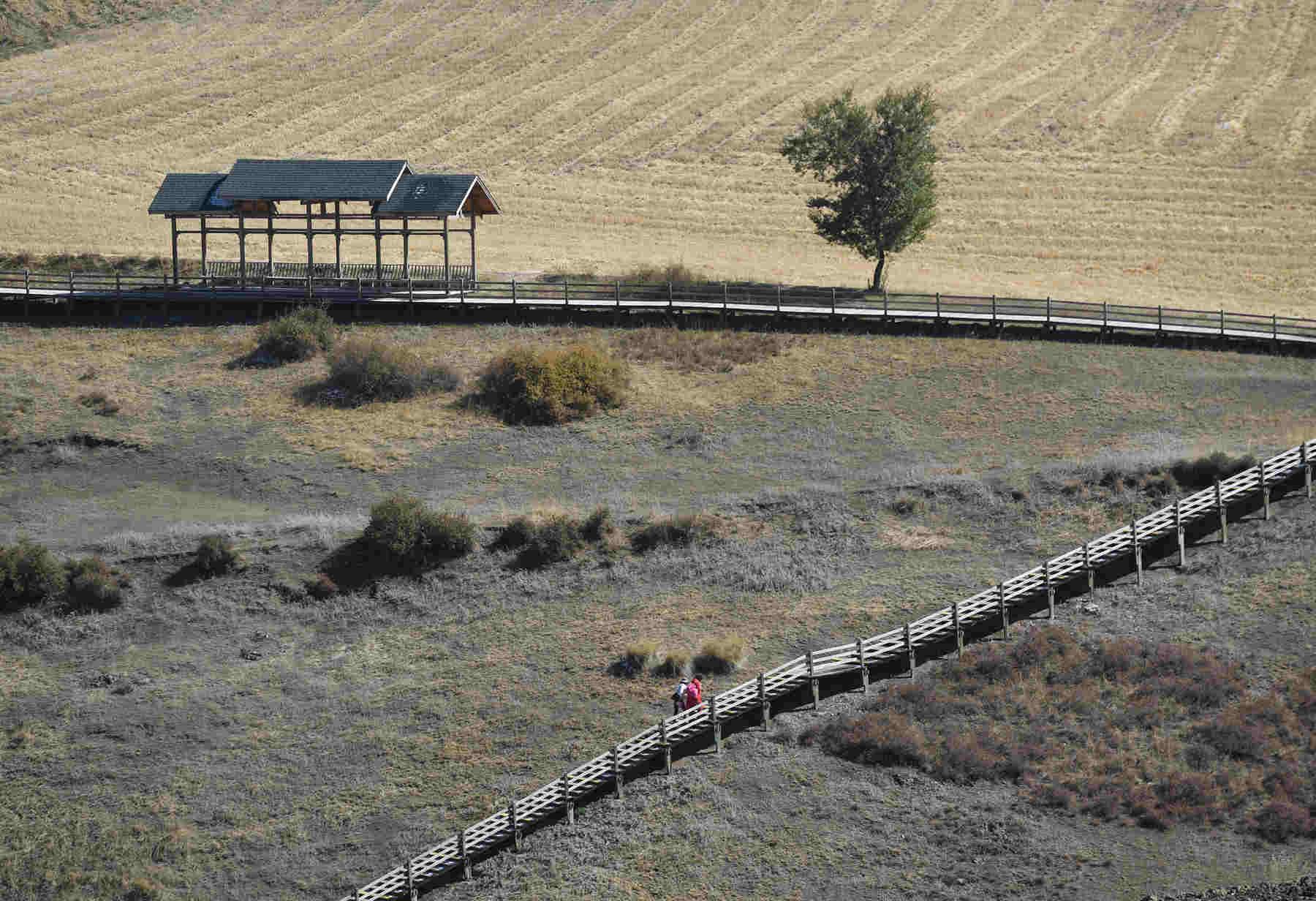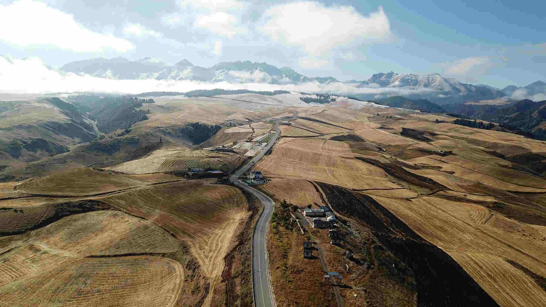 江布拉克景區位于新疆昌吉回族自治州奇臺縣境內,集天山山地垂直自然景觀、旱田人文景觀、古絲綢之路歷史遺存于一體。景區內相對高差超過3000米,形成了中溫帶、寒溫帶和寒帶組成的鮮明氣候帶,雪山、冰川、湖泊、草甸、森林、灌木、峽谷等自然景觀和麥田在這里交相輝映,仿佛一幅幅立體版畫。