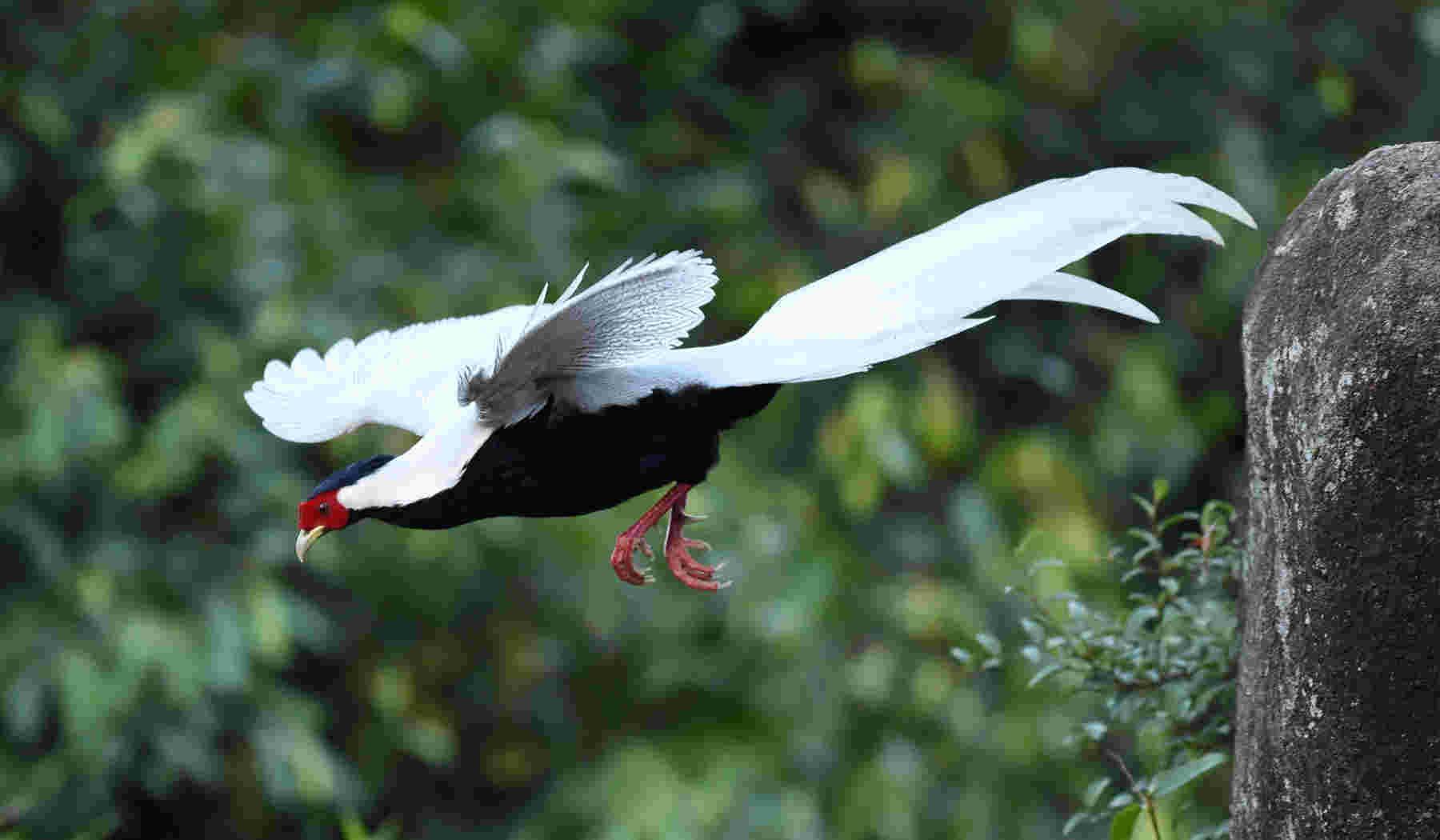 這是一群白鷴,也是賴高偉的“哥們”。他們之間的交往方式非常獨特:賴高偉只需登高而立,面向密林“咕、咕、咕”地叫幾聲,熟悉其聲音和身型的白鷴就會如“約”而至。
