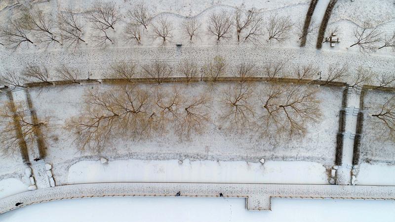這是12月14日拍攝的銀川市海寶公園雪景。