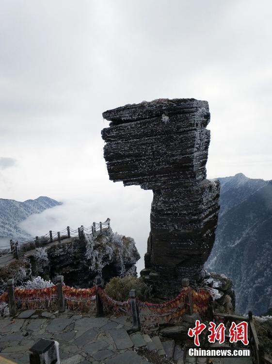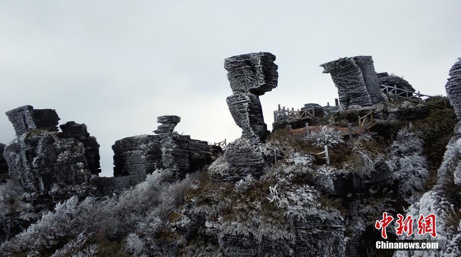 1月28日,受入冬以來最強冷空氣影響,連日來貴州省銅仁市印江縣出現雨雪凝凍天氣,其中梵凈山景區的結冰厚度達到2至3厘米。為保障游客安全,西上梵凈山景區山門暫時關閉。直至2月5日,梵凈山景區索道進行檢修,游客只能徒步登頂。圖為因雨雪凝凍形成的“山石云瀑”。 中新社發 邱勇 攝