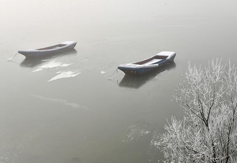 這是1月30日在安徽巢湖拍攝的霧凇。