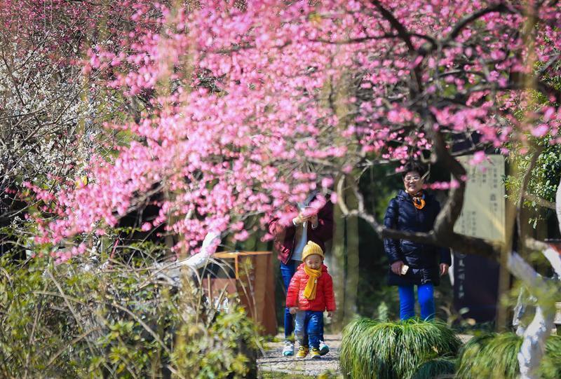 2月23日,人們?cè)诩资忻駨V場(chǎng)梅園中賞梅。