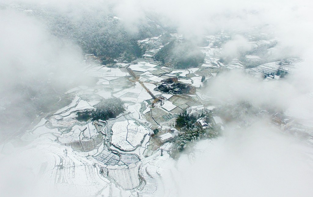 早春時節,湖北恩施土家族苗族自治州迎來降雪,當地山區茶園被白雪覆蓋。