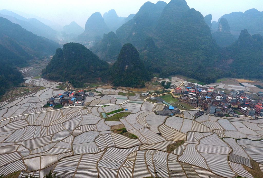這是2月15日在廣西羅城板團村航拍的覆膜農田。