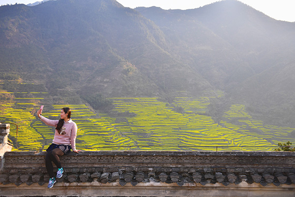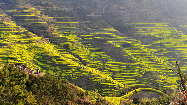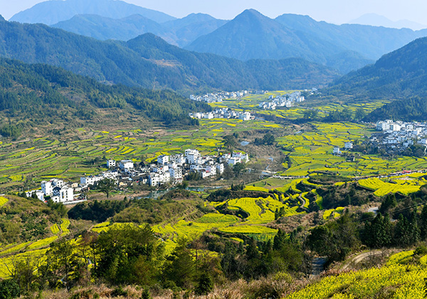 婺源縣江嶺村油菜花盛開的景象(3月8日攝)。