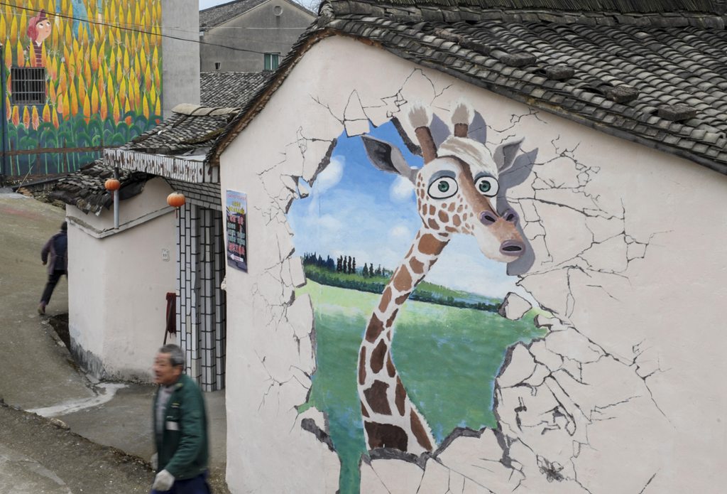 從2016年夏天開始,寧波市王家嶺村邀請畫師在民房墻壁上繪制卡通、風景等各種主題的3D畫,使小山村面貌清新,更具活力。