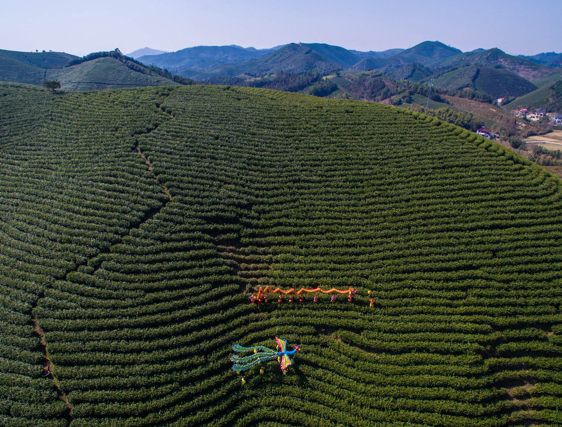 安吉茶農(nóng)茶山舞龍祈福