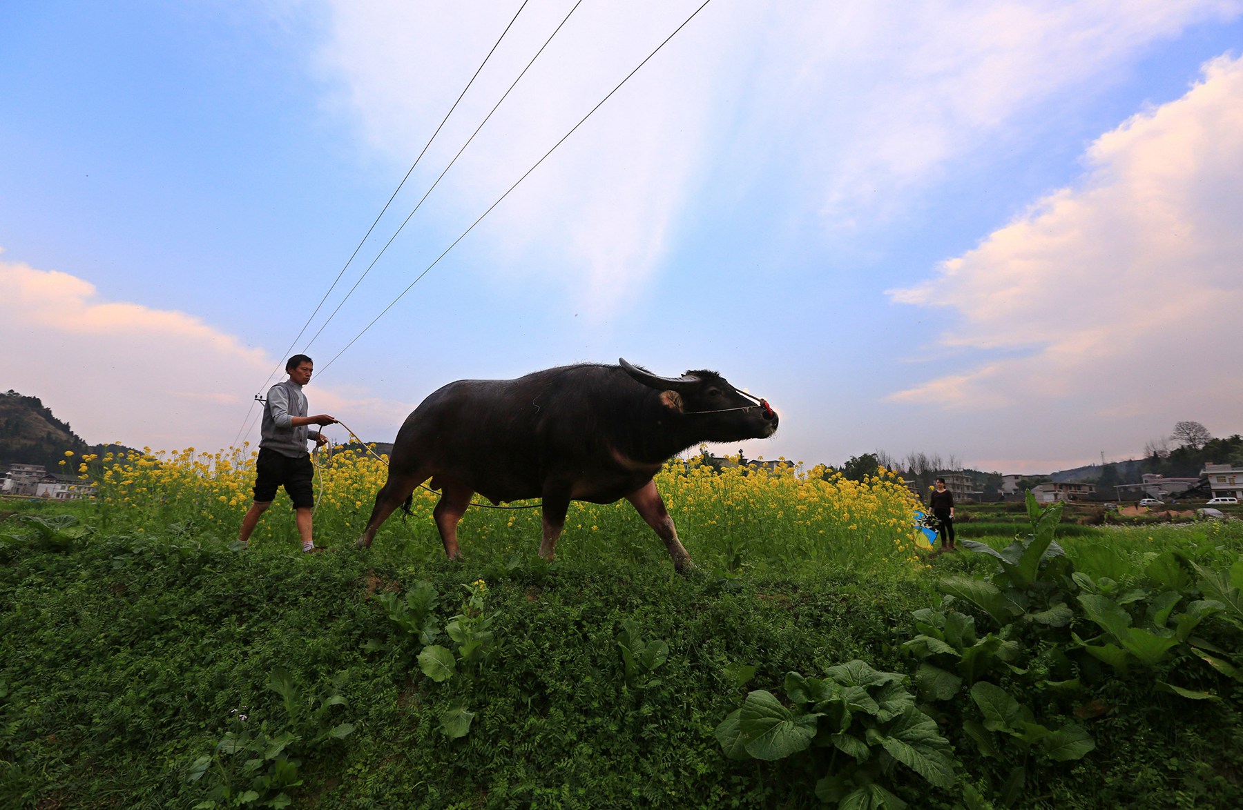 2月17日,貴州凱里,村民楊漢山趕著水牛去耕田。 早春時(shí)節(jié),隨著氣溫回升,各地春意漸濃。 新華社發(fā)(吳吉斌 攝)