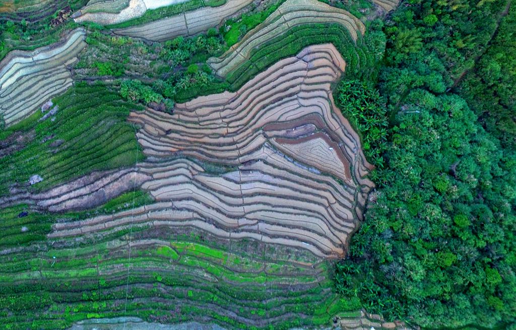 4月28日,空中俯瞰三明市尤溪縣的聯合梯田。