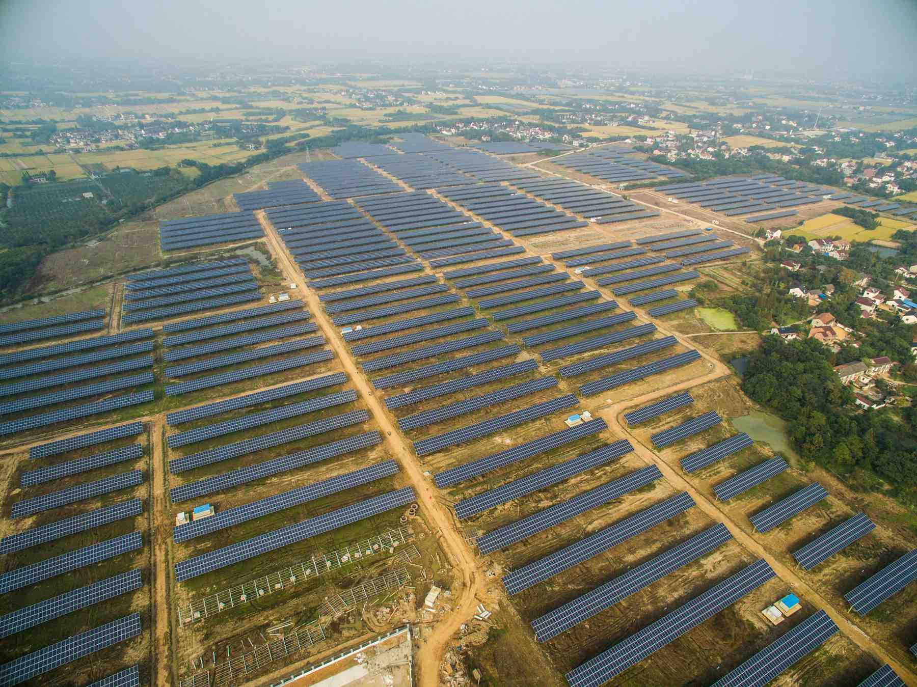 空中俯瞰長(zhǎng)興縣千畝光伏發(fā)電項(xiàng)目