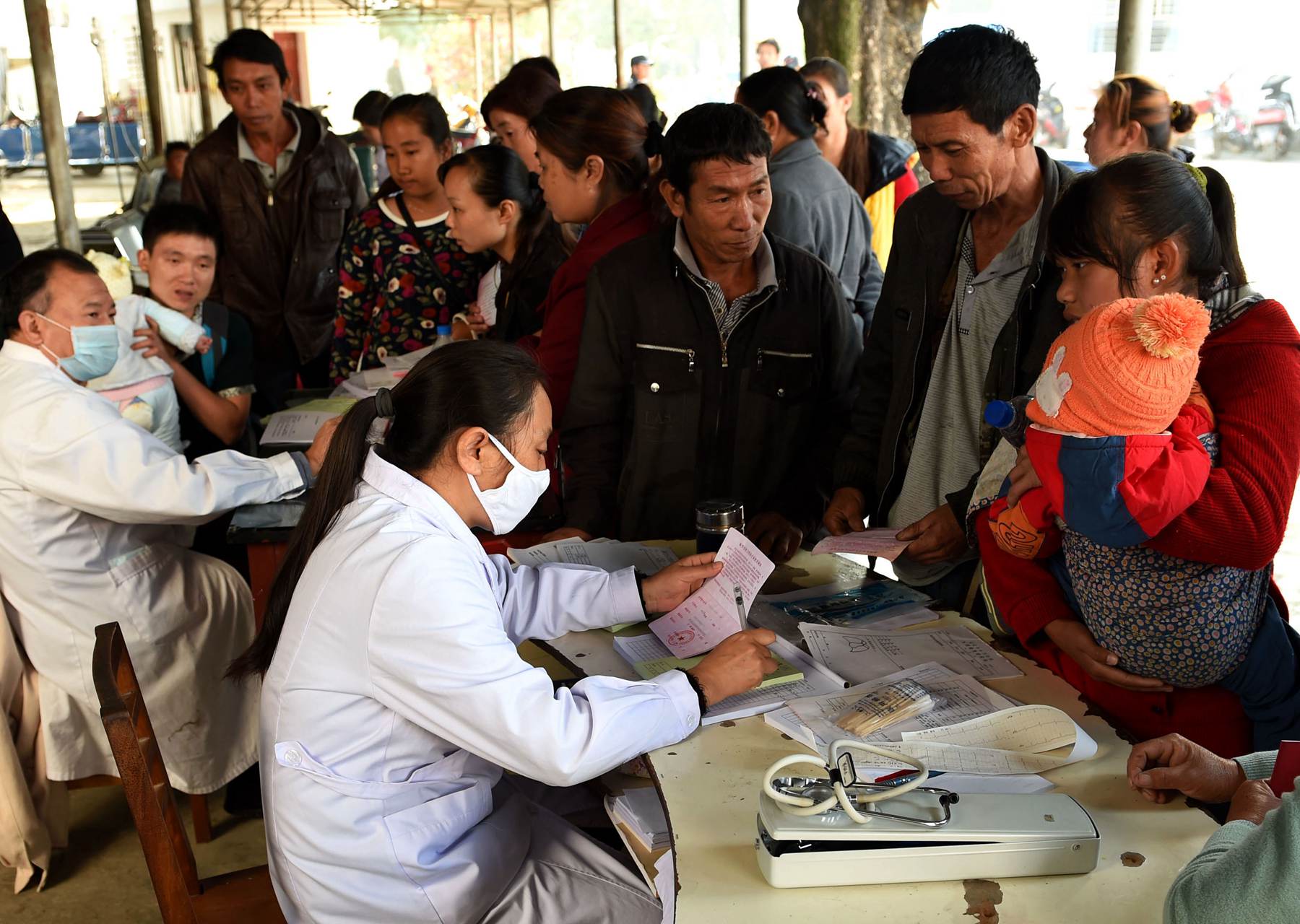 一些少數民族群眾在云南省耿馬傣族佤族自治縣孟定鎮中心衛生院看病(3月2日攝)。
