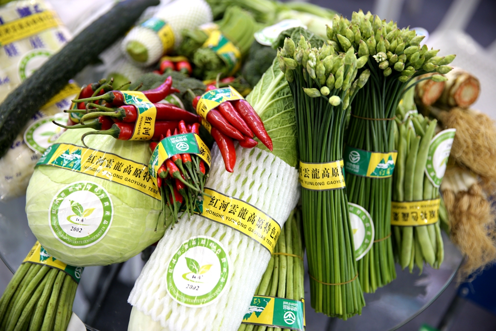 農(nóng)交會(huì)云南館紅河州九紅產(chǎn)業(yè)發(fā)展協(xié)會(huì)展出的高原特色蔬菜。 本網(wǎng)記者 霍然/攝