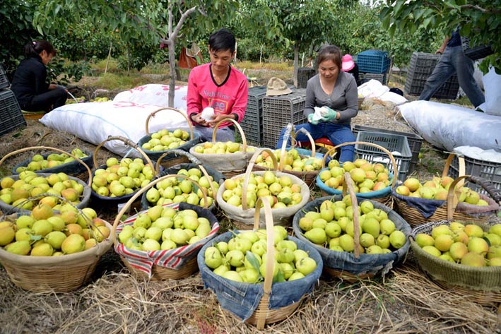 新疆庫爾勒市二十九團果農在包裝香梨。