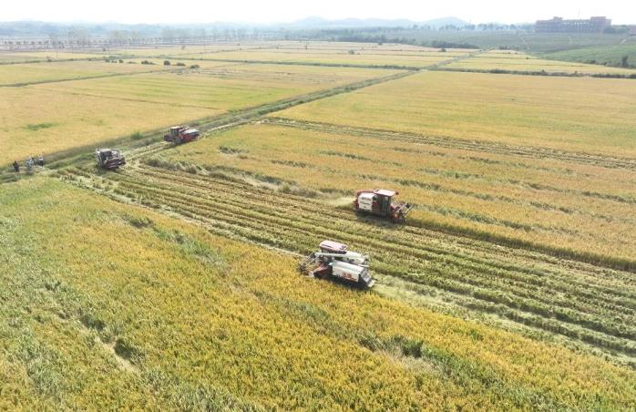 走在進(jìn)賢縣永橋農(nóng)場(chǎng)的田壟上,只見數(shù)臺(tái)聯(lián)合收割機(jī)在田間來回穿梭,一茬茬水稻被源源不斷地卷入收割機(jī)中,切割、脫粒、裝車……鄒贛南說,今年中稻畝產(chǎn)1130斤,“大旱之年,這個(gè)收成已經(jīng)非常不錯(cuò)了”。