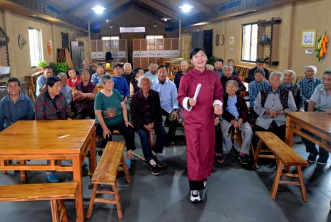在滁州市南譙區章廣鎮鴉窩村“小伍說書”室,農家書屋管理員伍健身著長衫手執折扇,給鄉親們說唱“鄉村振興”,說到精彩之處臺下聽眾拍手叫好。