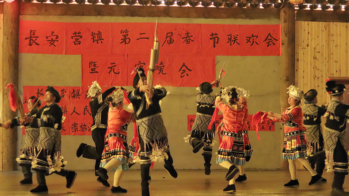 2024年2月24日晚,湖南省邵陽市城步苗族自治縣長安營鎮第二屆春節聯歡會暨元宵晚會成功舉辦,200余名群眾現場參與,線上觀看直播互動人數達到1000人次。晚會由該鎮4名穿著侗苗民族服裝的青年大學生主持。