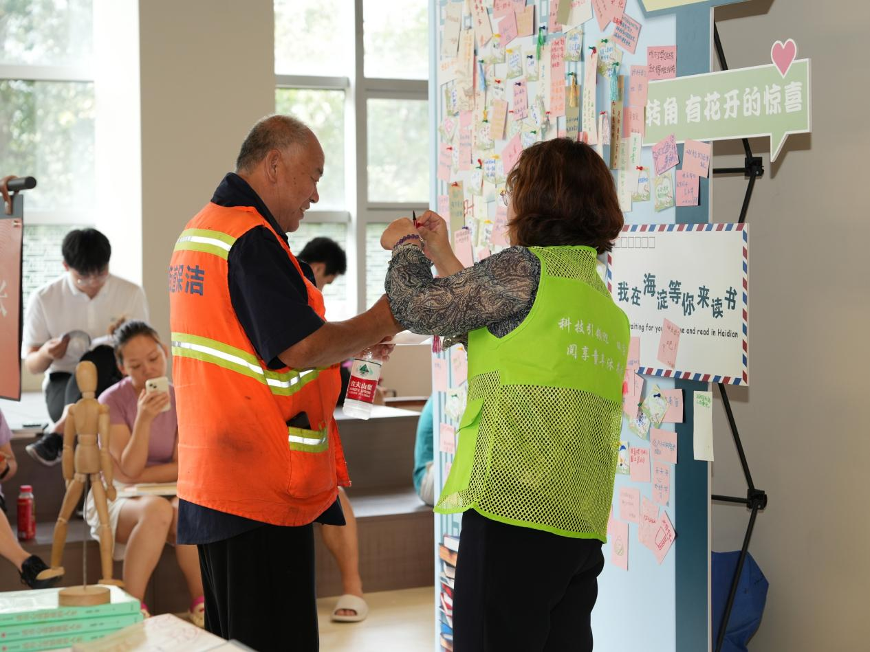 “我第一次參加這樣的活動,現在電子設備充斥生活的各個方面,海淀街道舉辦的這種閱讀活動,讓我們重新拿起筆與大家分享讀書的快樂,還可以邊喝咖啡邊看書,我以后也會多參加這樣的活動,豐富我的生活。”在時尚靈動的打卡墻前,一位市民表示。