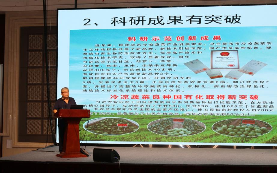 在專題研討會上,關(guān)慧明研究員以“為蔬菜良種國產(chǎn)化而奮斗”為題、張揚勇副所長以“科技支撐烏蘭察布冷涼蔬菜產(chǎn)業(yè)高質(zhì)量發(fā)展”為題分別作了專題報告,與會專家針對冷涼蔬菜面臨的問題和未來發(fā)展前景進行了充分討論。