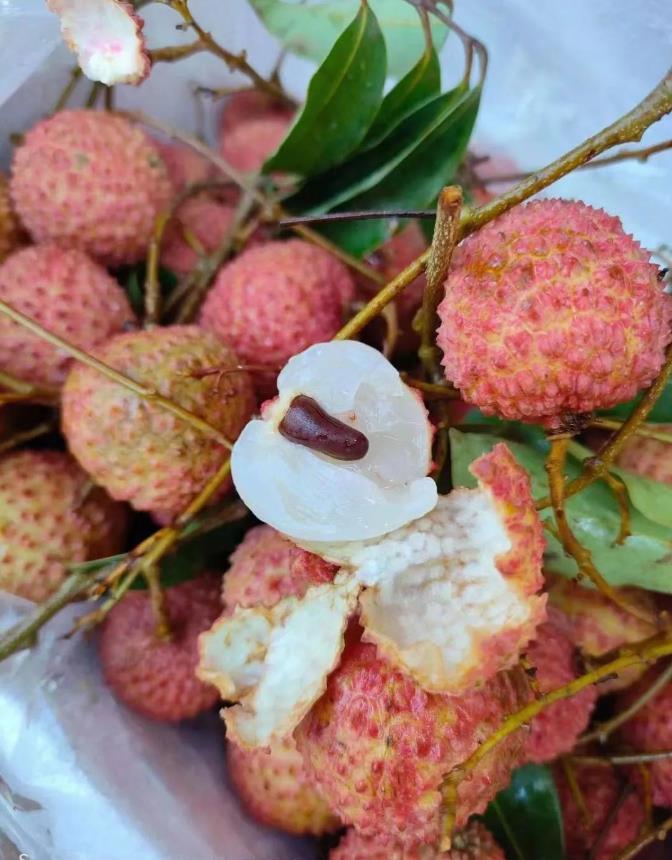 同為增城荔枝頂流的仙進奉,一個古老的荔枝品種,過去曾是皇家貢品。果色鮮艷清甜有微香、甜而不膩肉質爽脆、品質極優穩產耐儲存……集中了所有優質荔枝的優點。