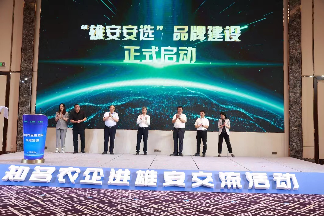 活動中,雄安新區公共服務局局長高立春、河北省農業品牌建設中心主任王旭東、河北省政府農業產業化辦公室主任王增利、雄安新區雄縣副縣長范曉飛、安新縣副縣長武海龍、容城縣副縣長王建鵬、河北雄安農業品牌促進會秘書長劉淼共同見證了“雄安安選”品牌建設啟動儀式。
