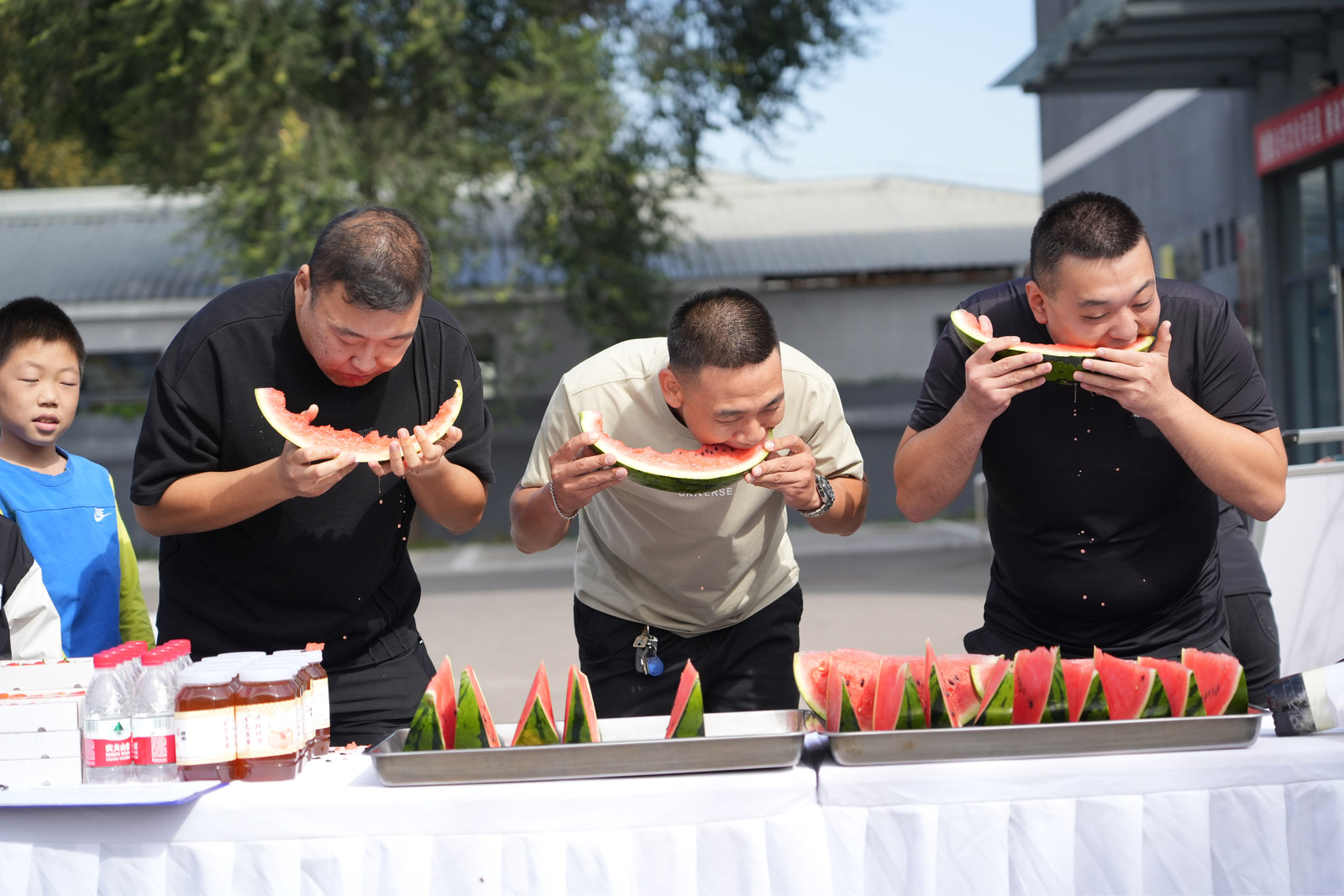 活動現場載歌載舞、喜笑顏開,另一邊吃西瓜比賽活動更是熱鬧非凡,吸引了眾多群眾圍觀參與。選手們在比賽中體驗著勞動和豐收的喜悅,活動現場歡聲笑語不斷。