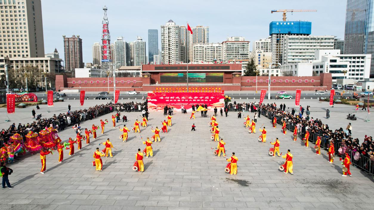 壓軸登場的當屬蘭州國家級非物質文化遺產——太平鼓表演將整個活動推向了最高潮。數十名鼓手身著鮮艷的服裝,手持鼓槌,列成整齊的方陣。隨著一聲令下,他們開始擊鼓,鏗鏘有力的鼓聲如萬馬奔騰,響徹整個廣場。鼓手們的步伐整齊劃一,他們跳躍、轉身、擊鼓,動作剛勁有力,氣勢磅礴。那激昂的鼓聲、豪邁的身姿,充分展現了城關區人民昂揚向上、奮發進取的精神風貌,也象征著城關區在新的一年里將如這鼓聲一般,奏響蓬勃發展的最強音。