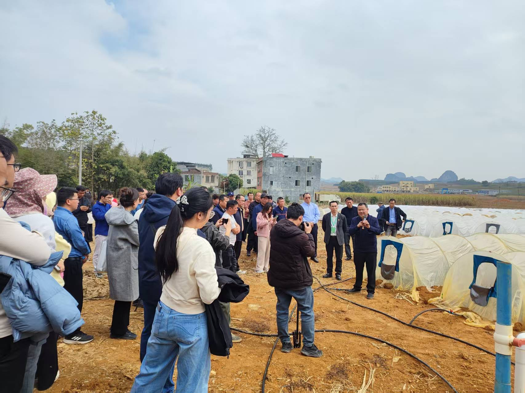 來賓市合山市“一縣一團”科技特派員深入北泗鎮葛根種植基地,實地考察葛根的采收和種植情況,并結合智能水肥一體化技術的應用,為農戶提供了精準的技術指導,促進當地通過“聯營村企”、“聯農帶農”等模式,整合資源,推動葛根全產業鏈發展,成為當地農民增收的重要渠道。