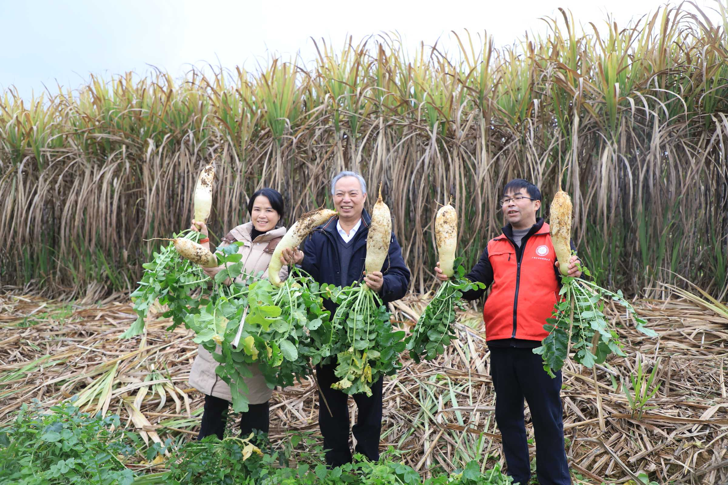 近期,柳州市融水苗族自治縣永樂鎮種植大戶和農業企業種植的甘蔗受到寒害,國家鄉村振興重點幫扶縣科技特派團融水團團長唐榮華研究員組織科技特派員深入現場,指導種植大戶開展甘蔗套種技術,通過實施甘蔗寬行叢生栽培、免剝葉操作。目前基地種植的甘蔗受凍害的影響不大,套種的蘿卜等作物生長良好。“科技特派員和農技人員帶來的防寒抗凍新技術特別有效,30多畝套種的甘蔗和蘿卜很好。接下來,我還可以收了甘蔗后繼續套種花生和生姜。”種植大戶黃克斌對此贊嘆不已。