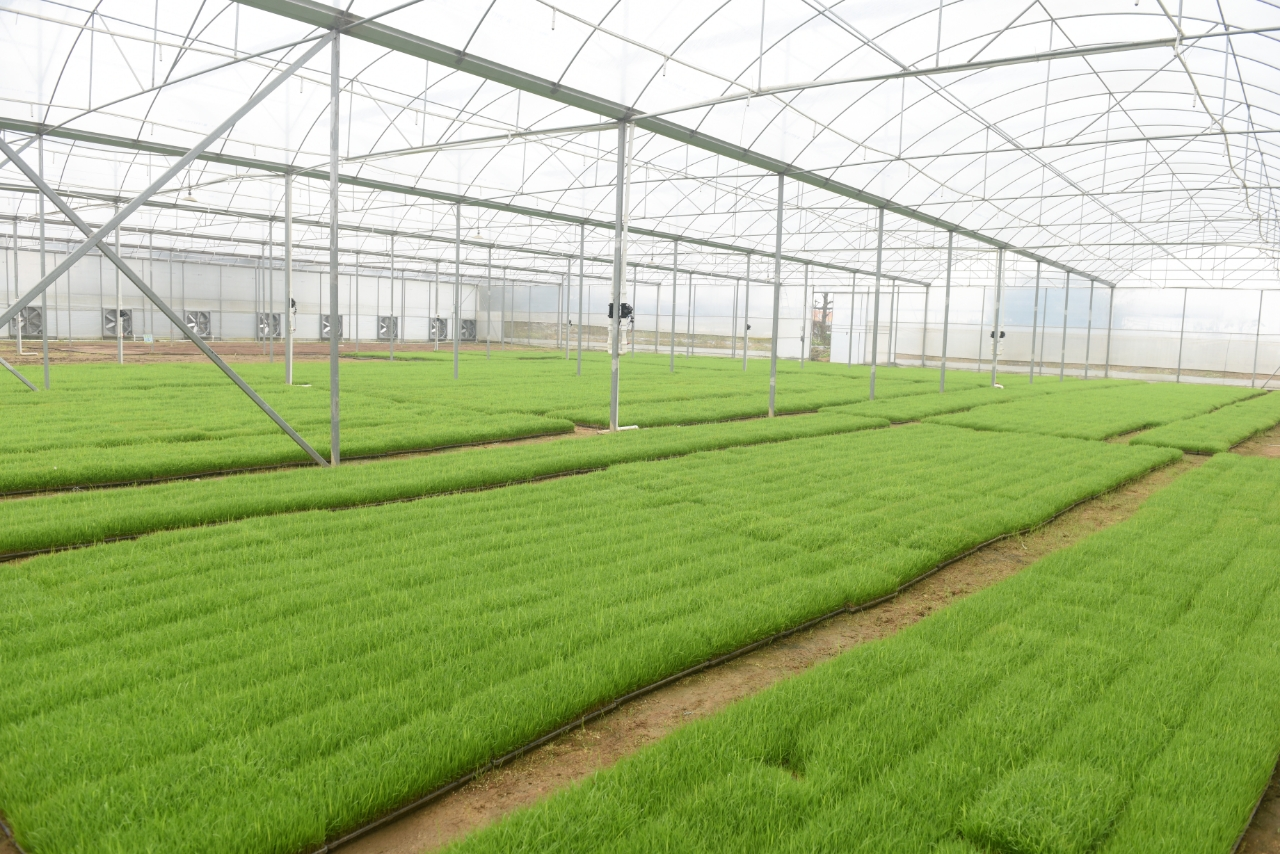 圖:高明區明城鎮“工廠化”育秧中心大棚里待栽插的秧苗。