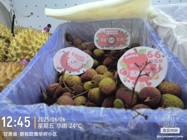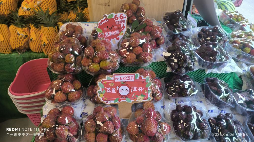 北京市豐臺區樂華梅蘭水果店內,廣東荔枝被擺放在最顯眼的位置,吸引著眾多顧客駐足選購。甘肅省蘭州市安寧區的果果家、宜居園、李鮮生、首楊水果等店鋪,也精心布置了“6·6給‘荔’節”的宣傳物料,讓顧客在品嘗荔枝美味的同時,感受到濃厚的節日氛圍。河北省石家莊、滄州市、任丘市,河南省鄭州市、新鄉市,山東省濟南市、濰坊市,山西省太原市等地的水果店里,廣東荔枝憑借其鮮嫩多汁、清甜可口的品質,贏得了當地消費者的喜愛。