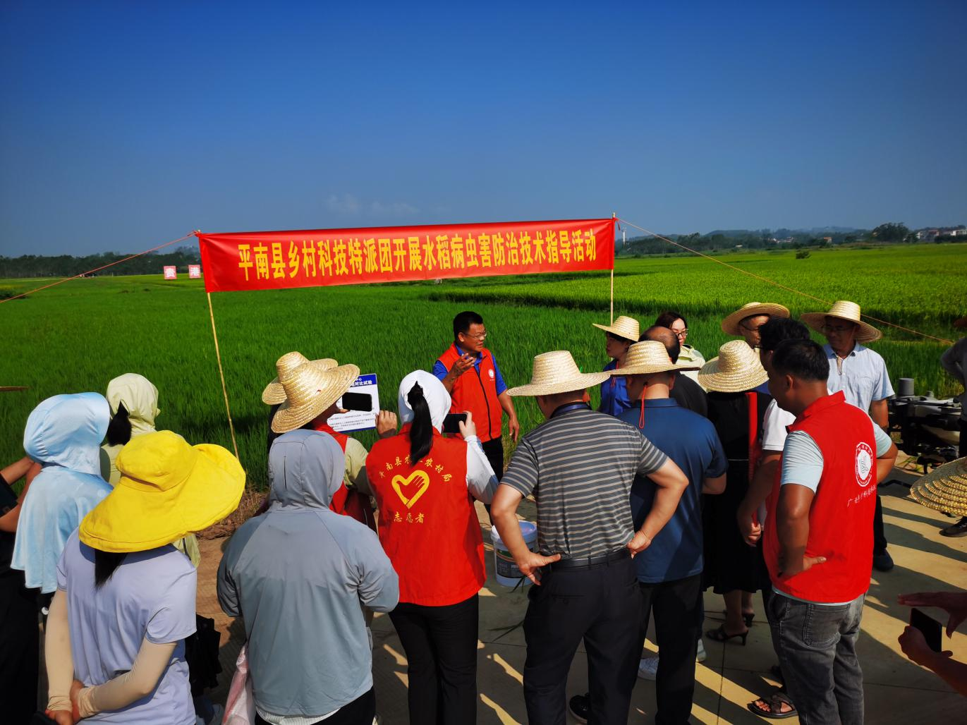 (貴港市平南縣鄉(xiāng)村科技特派團(tuán)開(kāi)展水稻病蟲(chóng)害防治技術(shù)指導(dǎo)活動(dòng)現(xiàn)場(chǎng) 通訊員林益群供圖)