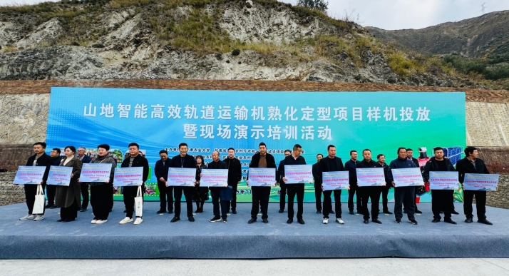 11月11日,“山地智能高效軌道運輸機熟化定型項目樣機投放暨現場演示培訓活動”在甘肅省隴南市武都區兩水鎮后村舉行。這是甘肅省針對丘陵山區特色產業發展瓶頸,推進“一小一大”農機先導區建設的又一重要舉措,標志著隴南山區農產品運輸正式邁入“軌道化”時代。