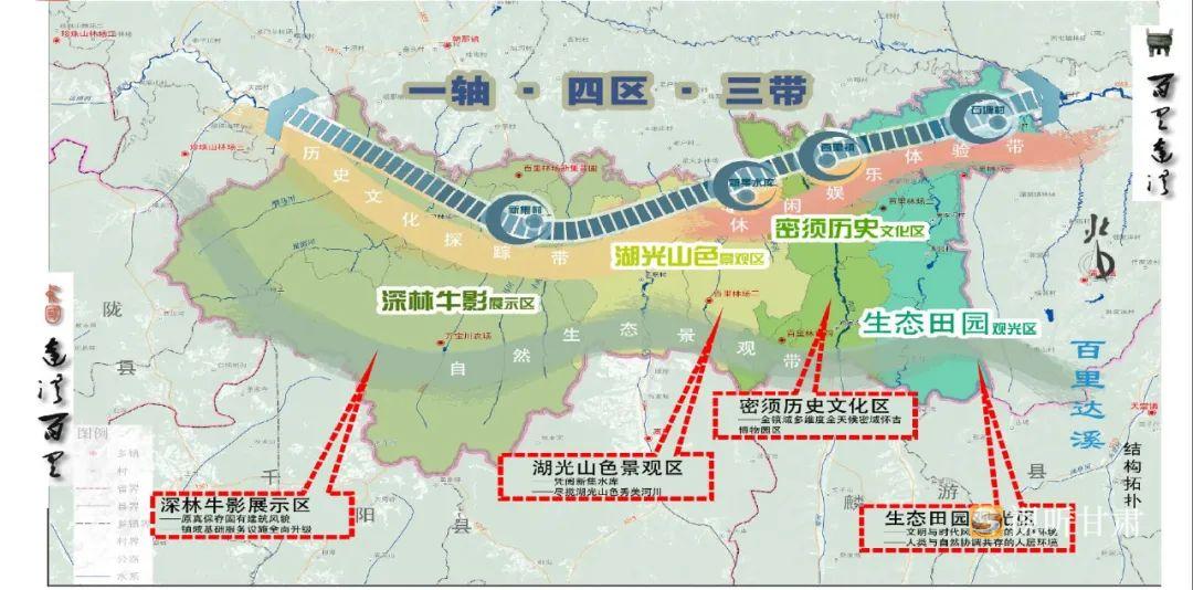 融入全局做規劃。緊扣“百里達溪·達溪百里”生態文化長廊AAA級景區創建總體目標,堅持“以文塑旅、以旅彰文、文旅共生、文旅共建”發展理念,立足全鎮“一軸四區三帶”規劃布局,依托百里深厚商周歷史文化底蘊和達溪河流域得天獨厚的自然生態優勢,積極整合古城遺存、自然風光、民俗故事、特色文化等資源,將下轄5村和百里街區一并納入密須歷史文化區建設,論證形成“城鎮、山水、兩帶、三區”區域發展規劃,科學設計密須古城體驗游、歷史文化探蹤游、生態田園觀光游3條精品旅游路線,為縱深推進密須古城文旅融合示范片帶建設繪就了發展藍圖。