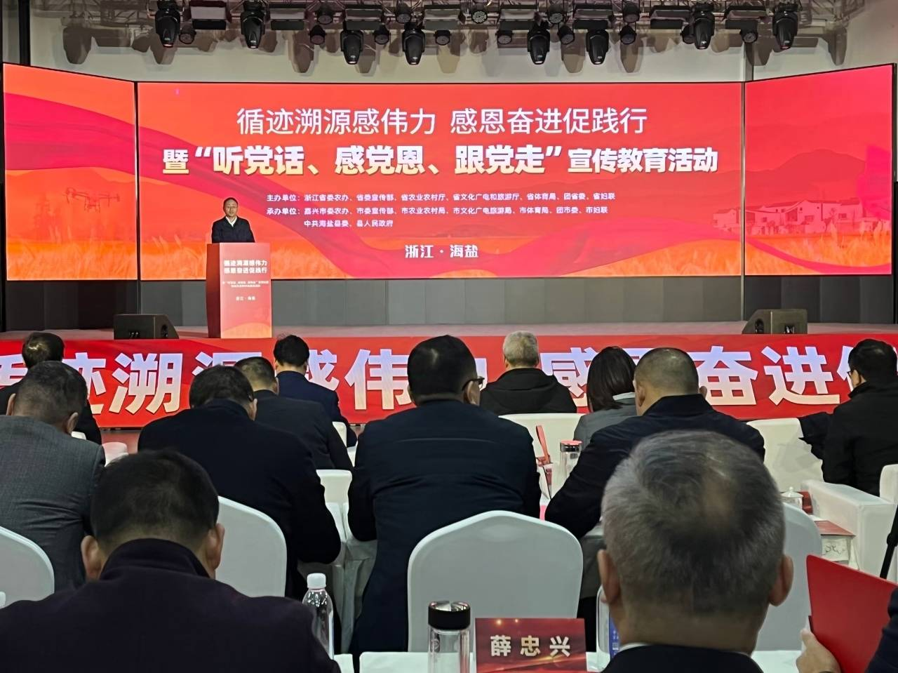 12月10—11日,循跡溯源感偉力、感恩奮進(jìn)促踐行暨“聽黨話、感黨恩、跟黨走”宣傳教育活動在浙江省海鹽縣舉辦。本次活動由浙江省委農(nóng)辦、省委宣傳部、省農(nóng)業(yè)農(nóng)村廳、省文化廣電和旅游廳、省體育局、團(tuán)省委、省婦聯(lián)聯(lián)合舉辦,省直有關(guān)部門及處室負(fù)責(zé)人,嘉興市、海鹽縣有關(guān)領(lǐng)導(dǎo)及部門負(fù)責(zé)人,習(xí)近平總書記調(diào)研走訪過的村(社區(qū))黨組織書記代表,農(nóng)業(yè)農(nóng)村系統(tǒng)干部和農(nóng)民群眾代表等參加活動。浙江省農(nóng)業(yè)農(nóng)村廳黨組成員、省畜牧農(nóng)機(jī)發(fā)展中心黨委書記、主任駱健民出席活動并講話。