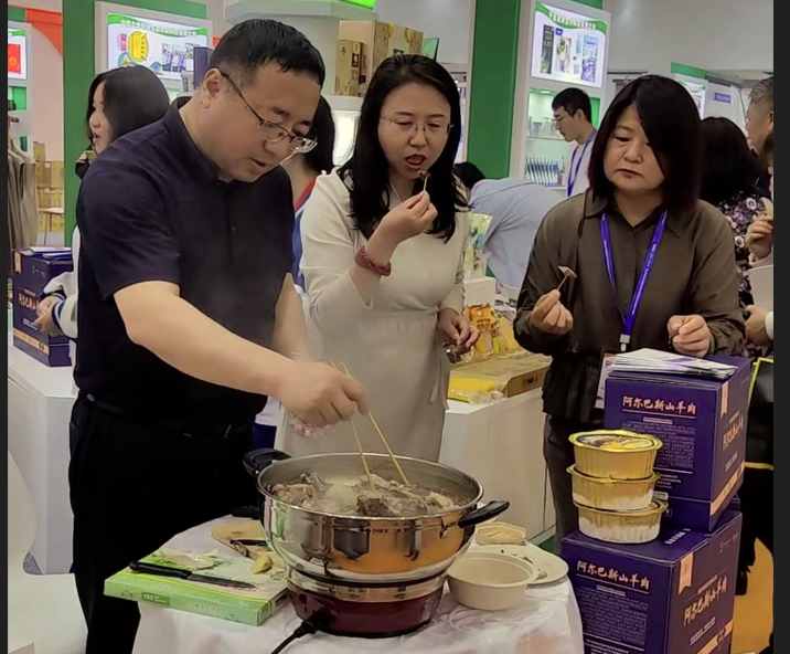 內蒙古自治區農牧廳重點組織了區內30家企業的預制菜產品參加展會。天賦牧之源、御盛齋、牧森百草、蒙薯等食品企業都是制作草原預制菜的“高手”,天然、綠色、高品質的食材,經過簡單的加工,十幾分鐘就能輕松烹煮出一道道草原特色菜,酥脆香醇的烤羊腿、口感軟嫩的羊蝎子、鮮香可口的草原紅牛肉、湯鮮味美的鹵羊雜、健康美味的薯條和土豆泥等100多種預制菜在博覽會亮相,其中13種產品被組委會授予優秀參展產品。7家企業現場簽訂了意向合作協議。