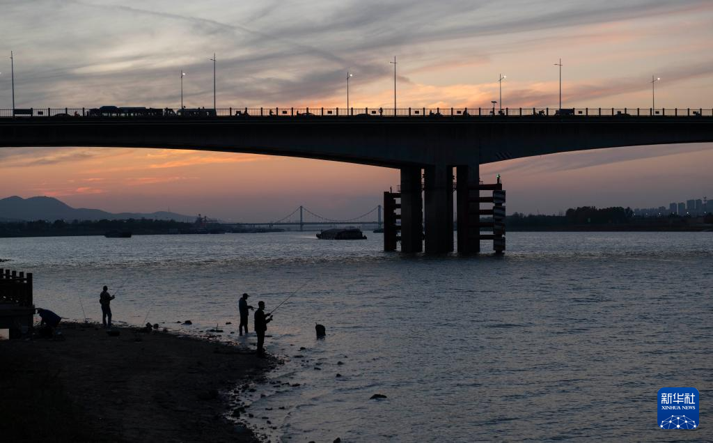 11月8日,市民在淮河安徽蚌埠段岸邊垂釣。