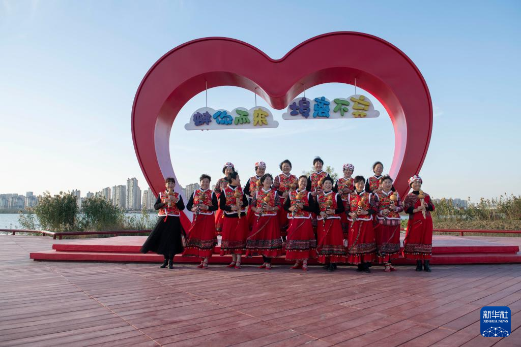 11月8日,市民在安徽省蚌埠市龍子湖風景區列隊準備表演。