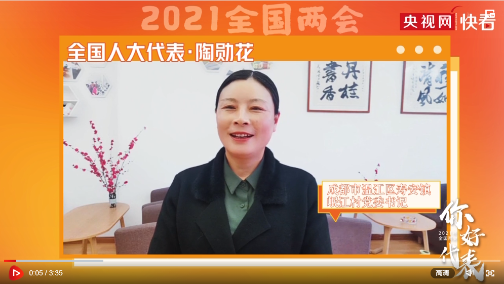 “鄉(xiāng)村振興也是一代接著一代干,所以說關心下一代工作就很重要。”陶勛花是成都市溫江區(qū)壽安鎮(zhèn)岷江村黨委書記,2021年是她作為全國人大代表履職的第四年。