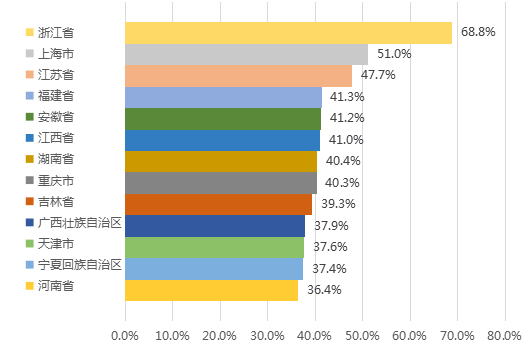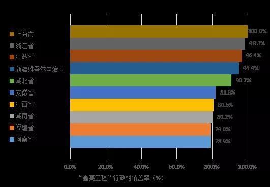 “雪亮工程”行政村覆蓋率排名前10位的省份