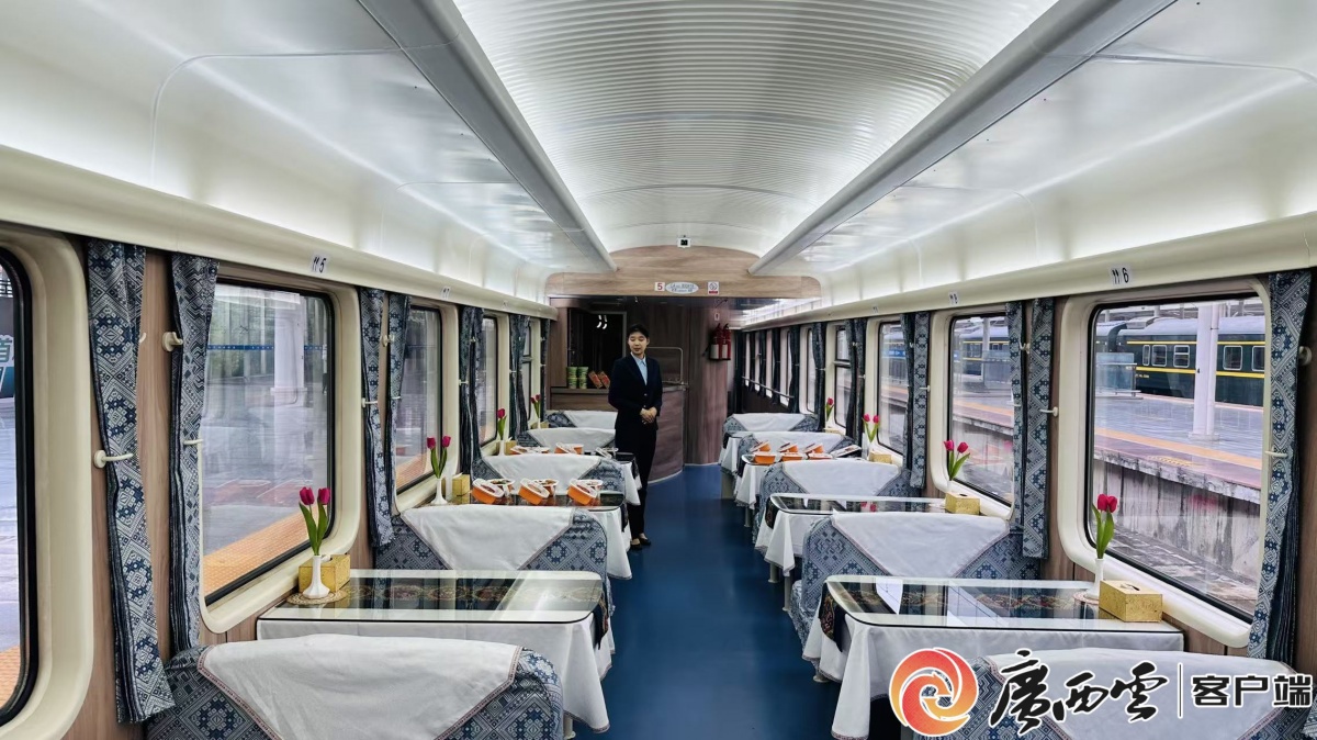 “專列全程還設有‘移動文旅推介會’‘健康伴你行’沙龍,推出‘一票通游’服務,即一次購票享受交通、住宿、餐飲、門票等全包服務,同時創新‘靈活停靠’模式,串聯南寧、柳州、南丹、百色、桂林等五大精品線路,讓游客深度體驗民族文化、紅色圣地和山水風光。”韋翊說。
