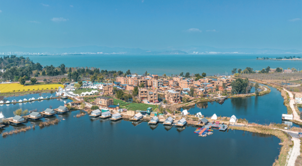 項(xiàng)目突出生態(tài)與產(chǎn)業(yè)深度融合,退出低端大棚 700 畝、整治水域 800 畝、增綠補(bǔ)綠 400 畝,將滇池生態(tài)保護(hù)資源直接轉(zhuǎn)化為旅游吸引力,保留傳統(tǒng)漁村風(fēng)貌,形成“村在景中、景在村內(nèi)”的獨(dú)特場(chǎng)景。創(chuàng)新運(yùn)營(yíng)模式,推行“運(yùn)營(yíng)前置”理念,實(shí)現(xiàn)策劃、建設(shè)、運(yùn)營(yíng)“三協(xié)同”,同時(shí)構(gòu)建“1+1+N”協(xié)同運(yùn)營(yíng)模式,創(chuàng)新“房票制”讓村民變股民。強(qiáng)化美學(xué)與數(shù)字化賦能,以“農(nóng)”為基,以“文”為魂,以“旅”為脈,構(gòu)建農(nóng)文旅美學(xué)復(fù)合型業(yè)態(tài);通過(guò)小程序、物聯(lián)網(wǎng)及新媒體矩陣實(shí)現(xiàn)智慧治理與精準(zhǔn)營(yíng)銷。