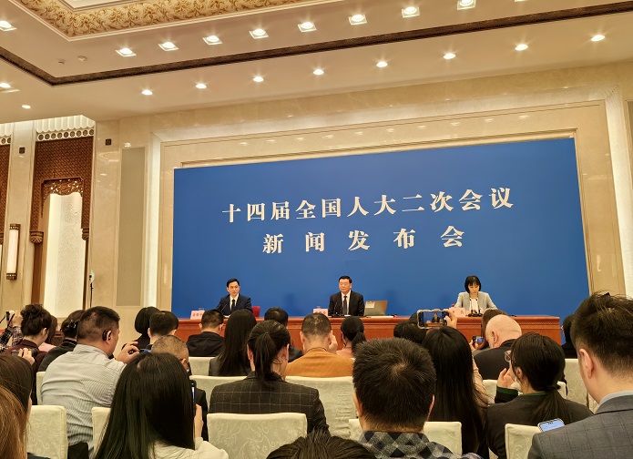 3月4日,十四屆全國人大二次會議新聞發布會在人民大會堂新聞發布廳舉行,大會發言人婁勤儉介紹相關情況并回答記者提問。