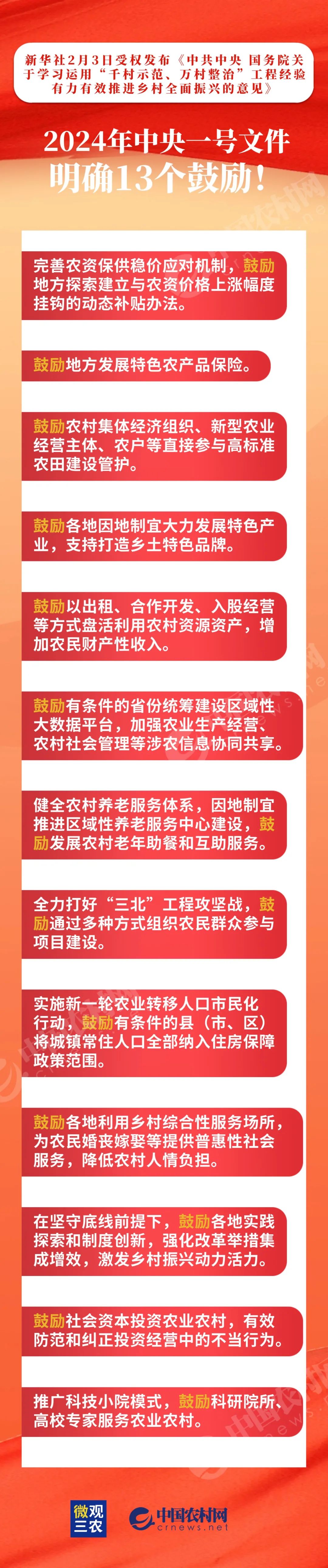 2024年中央一號文件明確13個鼓勵!