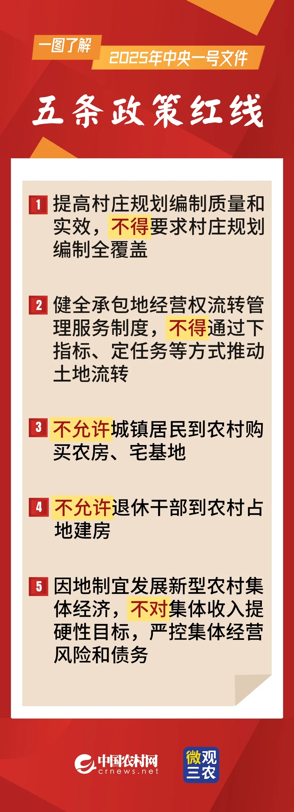一圖了解丨2025年中央一號文件中的“五條政策紅線”