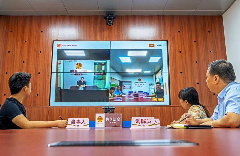 三、堅持規范高效,健全完善制度保障體系。共享法庭建設打破司法服務在工作時間和空間上的制約,把分散的司法資源串聯起來,串點成線、連線成面,推動司法資源由散到聚、以聚促變,構建起覆蓋城鄉全域的法律服務網絡。一是強化數字賦能。研發迭代共享法庭應用2.0,集成人民法院在線服務、中國庭審公開網等應用,貫通法院一體化辦公辦案平臺、移動微法院、浙江解紛碼、基層治理四平臺,努力讓每一個當事人感受到智慧法院建設的增量紅利,推動基層糾紛化解由經驗判斷向數據分析轉變。二是強化示范引領。聚焦提質增效目標,持續鞏固建設成果,編寫《共享法庭:基層治理法治化的浙江實踐與探索》書籍,開展三批56家示范共享法庭評選,編發建設工作通報14期,推動全省共享法庭在學習中追趕、在追趕中發展、在發展中跨越。三是強化機制保障。聚焦共享法庭建設重點難點,發布《共享法庭建設與運行規范》省級地方標準,出臺《“共享法庭”庭務主任管理辦法》等11項制度標準,將共享法庭建設納入平安市、縣(市、區)考核、法治浙江(法治政府)建設考核,明確工作指引、日常管理規定、考核辦法及指標體系,切實提升運行實效,為鄉村振興提供優質司法服務。