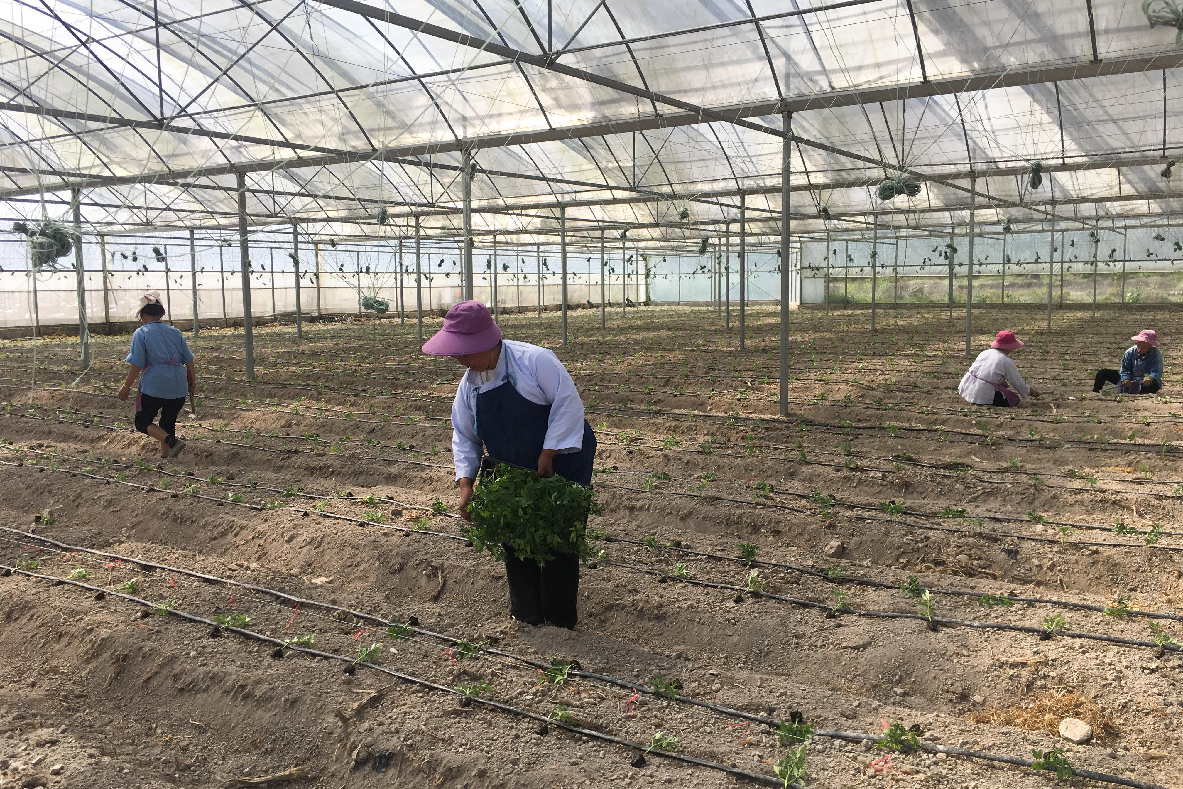 眼下,走進(jìn)這個(gè)360多畝的蔬菜基地,放眼望去,40個(gè)大棚整齊排列,棚內(nèi)不時(shí)有群眾在翻耕土地、移栽菜苗。
