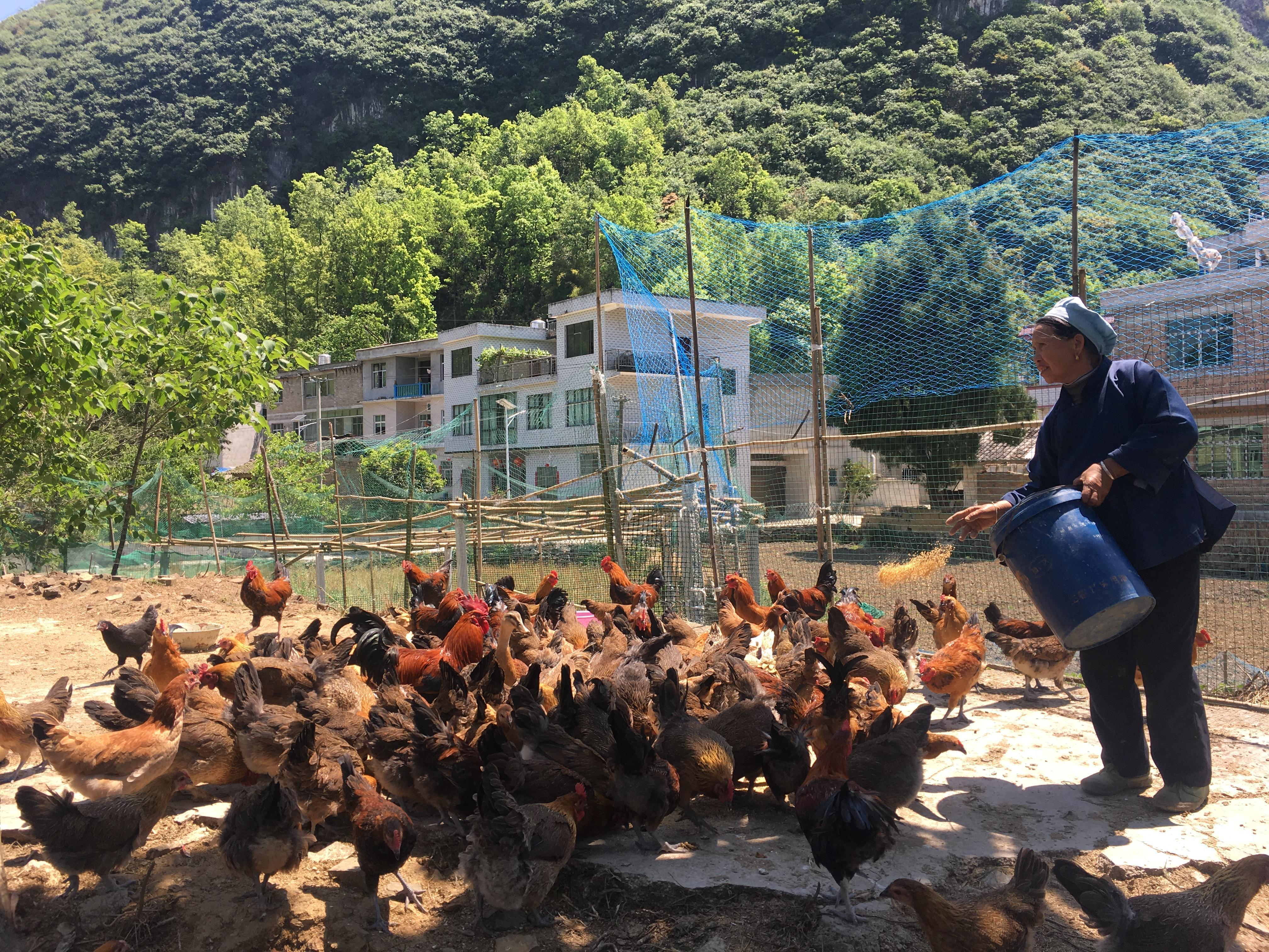 村民在貴州省長(zhǎng)順縣代化鎮(zhèn)喂綠殼蛋雞(4月28日攝)。