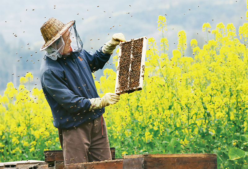 發展產業是實現脫貧的根本之策。要因地制宜,把培育產業作為推動脫貧攻堅的根本出路,強化穩定增收幫扶措施。圖為2020年3月8日,在重慶市梁平區石安鎮聯豐村七組,蜂農正在油菜田邊放養蜜蜂。目前,該鎮養蜂村民達600多戶,蜜蜂數量達8000多群,其中有60多戶貧困戶通過養蜂走上了脫貧致富的道路。 中新社記者 劉輝/攝