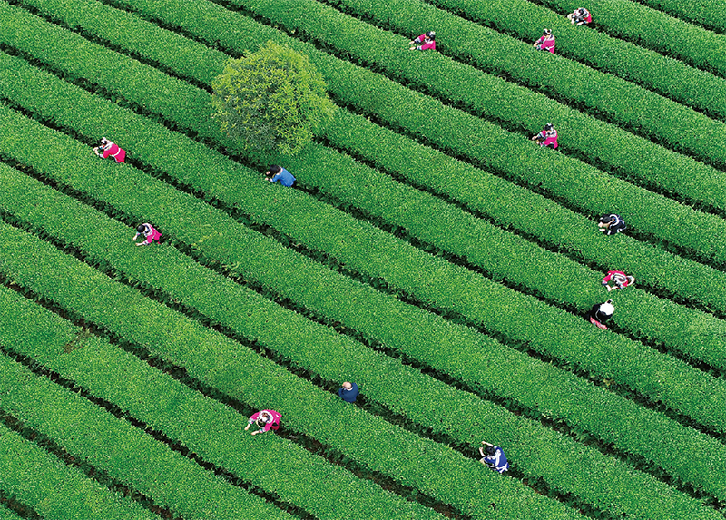 貴州省縱深推進農村產業革命,發展十二大特色優勢農業產業。圖為2020年4月19日銅仁市松桃苗族自治縣普覺鎮的茶農們正在茶園采摘茶葉。 松桃縣融媒體中心 龍元彬/攝
