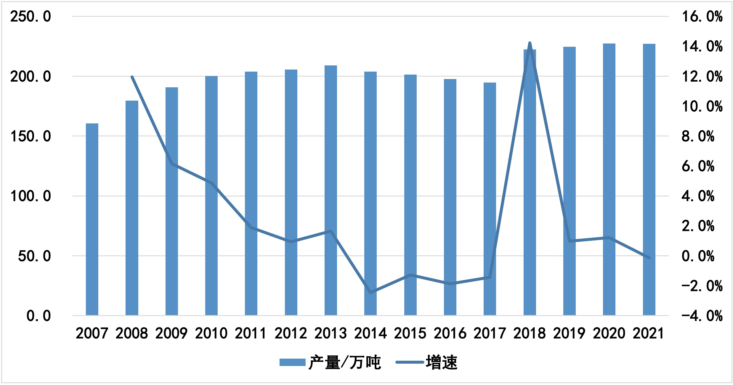 圖1. 2007—2021年全球板栗產(chǎn)量和增速分布情況圖